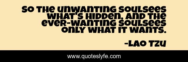 This page presents the quote "So the unwanting soulsees what's hidden, and the ever-wanting soulsees only what it wants.". Author of this quote is Lao Tzu. This quote is about soul, greed,.