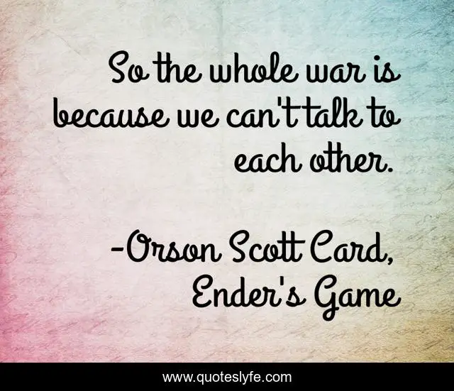 This page presents the quote "So the whole war is because we can't talk to each other.". Author of this quote is Orson Scott Card, Ender's Game. This quote is about communication, war,.