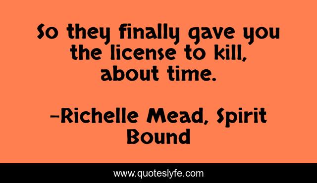 This page presents the quote "So they finally gave you the license to kill, about time.". Author of this quote is Richelle Mead, Spirit Bound. This quote is about funny, comedy, christian, vampire-academy-series,.