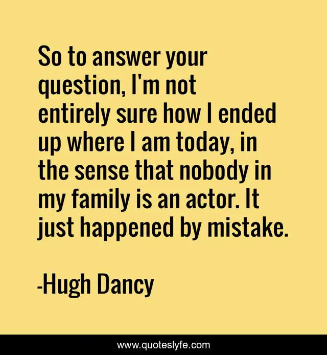 This page presents the quote "So to answer your question, I'm not entirely sure how I ended up where I am today, in the sense that nobody in my family is an actor. It just happened by mistake.". Author of this quote is Hugh Dancy. This quote is about today, mistake,.