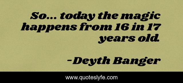 This page presents the quote "So... today the magic happens from 16 in 17 years old.". Author of this quote is Deyth Banger. This quote is about happens, magic, old, years,.