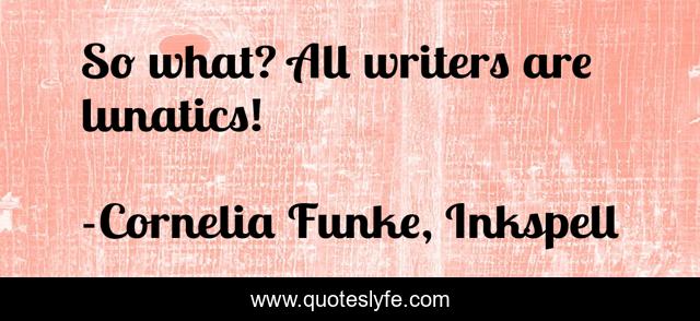 "Cornelia Funke, Inkspell Quotes." Quoteslyfe.com, 2025. Tue. 09 Dec. 2025. <https://www.quoteslyfe.com/quote/So-what-All-writers-are-lunatics-5518>.