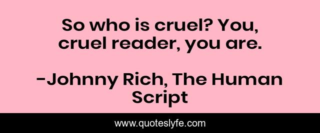 "Johnny Rich, The Human Script Quotes." Quoteslyfe.com, 2025. Tue. 09 Dec. 2025. <https://www.quoteslyfe.com/quote/So-who-is-cruel-You-cruel-reader-258978>.