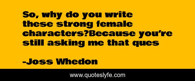 This page presents the quote "So, why do you write these strong female characters?Because you’re still asking me that ques". Author of this quote is Joss Whedon. This quote is about progress, femininism, understanding,.
