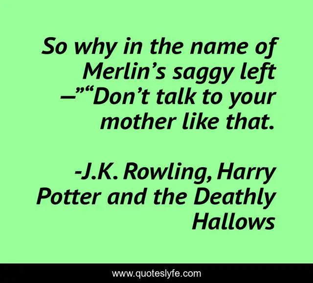 "J.K. Rowling, Harry Potter and the Deathly Hallows Quotes." Quoteslyfe.com, 2025. Sat. 06 Dec. 2025. <https://www.quoteslyfe.com/quote/So-why-in-the-name-of-Merlin-5686>.