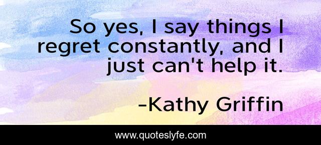 "Kathy Griffin Quotes." Quoteslyfe.com, 2025. Fri. 05 Dec. 2025. <https://www.quoteslyfe.com/quote/So-yes-I-say-things-I-regret-158972>.