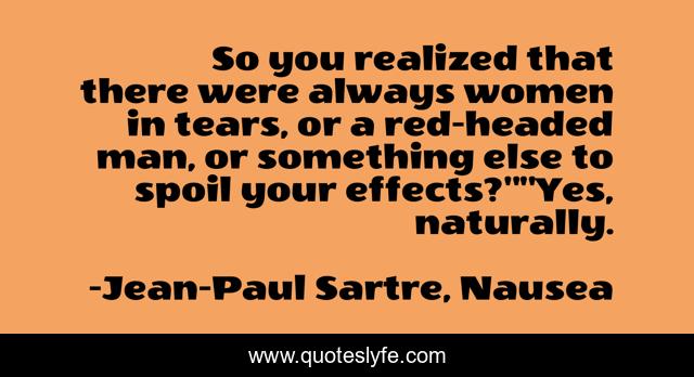 This page presents the quote "So you realized that there were always women in tears, or a red-headed man, or something else to spoil your effects?""Yes, naturally.". Author of this quote is Jean-Paul Sartre, Nausea. .