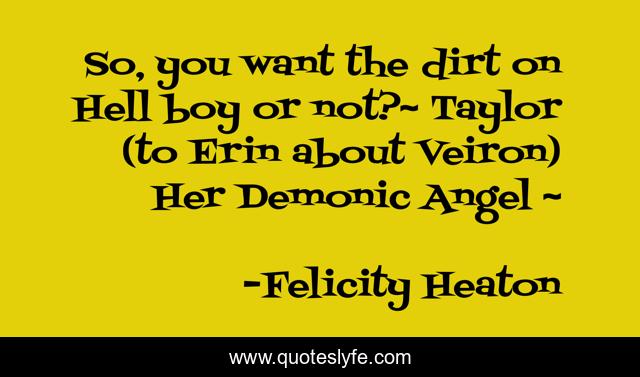 This page presents the quote "So, you want the dirt on Hell boy or not?~ Taylor (to Erin about Veiron) Her Demonic Angel ~". Author of this quote is Felicity Heaton. This quote is about attraction, demon,.