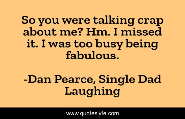 "Dan Pearce, Single Dad Laughing Quotes." Quoteslyfe.com, 2025. Mon. 08 Dec. 2025. <https://www.quoteslyfe.com/quote/So-you-were-talking-crap-about-me-144382>.