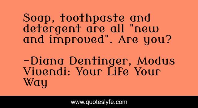 "Diana Dentinger, Modus Vivendi: Your Life Your Way Quotes." Quoteslyfe.com, 2025. Fri. 05 Dec. 2025. <https://www.quoteslyfe.com/quote/Soap-toothpaste-and-detergent-are-all-new-14729>.