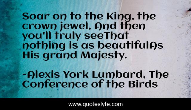 "Alexis York Lumbard, The Conference of the Birds Quotes." Quoteslyfe.com, 2025. Mon. 08 Dec. 2025. <https://www.quoteslyfe.com/quote/Soar-on-to-the-King-the-crown-187652>.