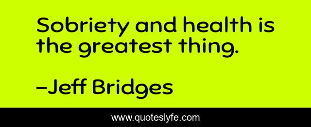 This page presents the quote "Sobriety and health is the greatest thing.". Author of this quote is Jeff Bridges. This quote is about greatest, sobriety,.