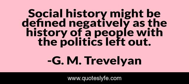 This page presents the quote "Social history might be defined negatively as the history of a people with the politics left out.". Author of this quote is G. M. Trevelyan. This quote is about people, history, social,.
