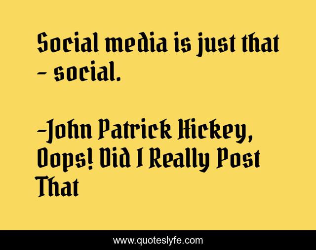 "John Patrick Hickey, Oops! Did I Really Post That Quotes." Quoteslyfe.com, 2025. Tue. 09 Dec. 2025. <https://www.quoteslyfe.com/quote/Social-media-is-just-that-social-136534>.
