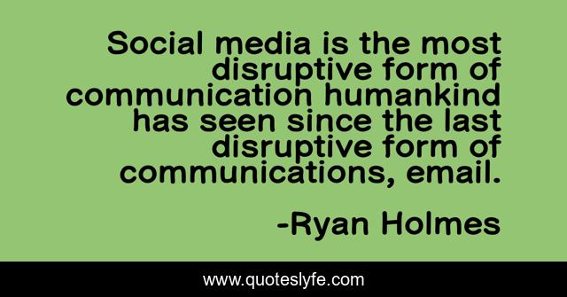 This page presents the quote "Social media is the most disruptive form of communication humankind has seen since the last disruptive form of communications, email.". Author of this quote is Ryan Holmes. This quote is about social media, email, media,.