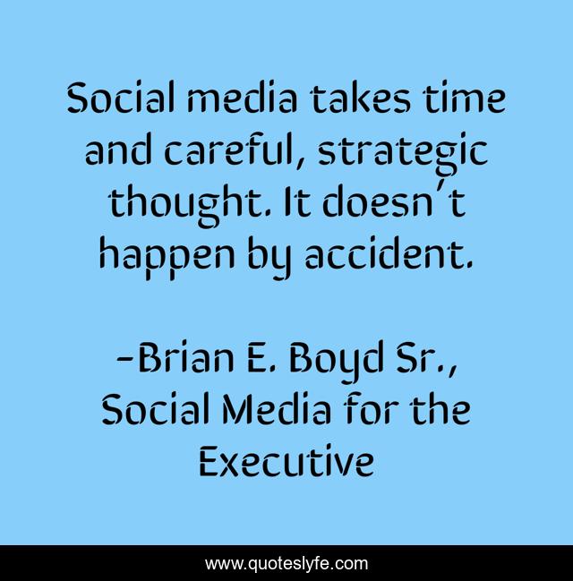 "Brian E. Boyd Sr., Social Media for the Executive Quotes." Quoteslyfe.com, 2025. Sat. 06 Dec. 2025. <https://www.quoteslyfe.com/quote/Social-media-takes-time-and-careful-strategic-128978>.