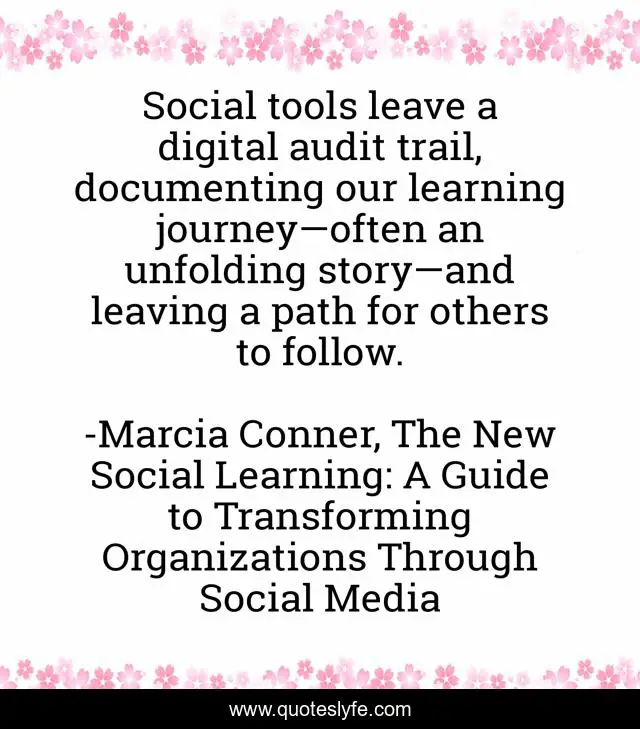 "Marcia Conner, The New Social Learning: A Guide to Transforming Organizations Through Social Media Quotes." Quoteslyfe.com, 2025. Fri. 05 Dec. 2025. <https://www.quoteslyfe.com/quote/Social-tools-leave-a-digital-audit-trail-117509>.