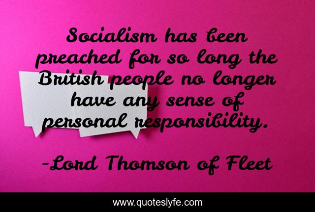 This page presents the quote "Socialism has been preached for so long the British people no longer have any sense of personal responsibility.". Author of this quote is Lord Thomson of Fleet. This quote is about , england, k, u,.