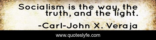 "Carl-John X. Veraja Quotes." Quoteslyfe.com, 2025. Sat. 06 Dec. 2025. <https://www.quoteslyfe.com/quote/Socialism-is-the-way-the-truth-and-244021>.