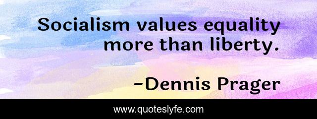 This page presents the quote "Socialism values equality more than liberty.". Author of this quote is Dennis Prager. This quote is about socialism, values, liberty,.