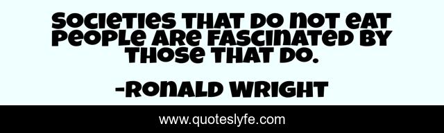 This page presents the quote "Societies that do not eat people are fascinated by those that do.". Author of this quote is Ronald Wright. This quote is about historians, history,.