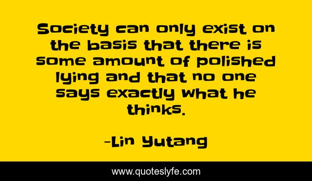 This page presents the quote "Society can only exist on the basis that there is some amount of polished lying and that no one says exactly what he thinks.". Author of this quote is Lin Yutang. This quote is about society, social,.