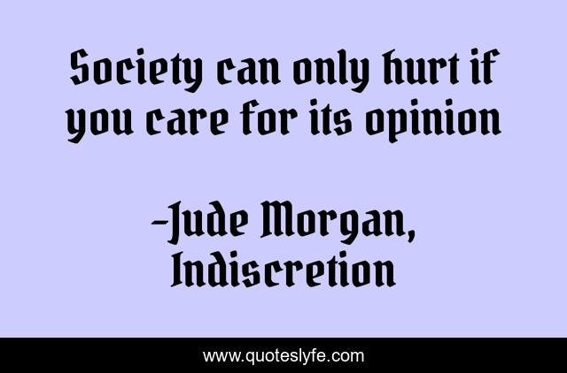 "Jude Morgan, Indiscretion Quotes." Quoteslyfe.com, 2025. Sat. 06 Dec. 2025. <https://www.quoteslyfe.com/quote/Society-can-only-hurt-if-you-care-102331>.