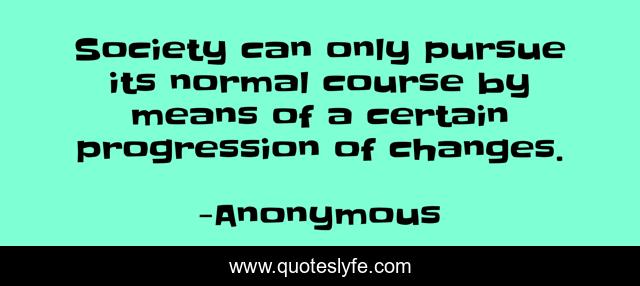 This page presents the quote "Society can only pursue its normal course by means of a certain progression of changes.". Author of this quote is Anonymous. .