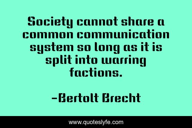 This page presents the quote "Society cannot share a common communication system so long as it is split into warring factions.". Author of this quote is Bertolt Brecht. This quote is about society, system, long,.