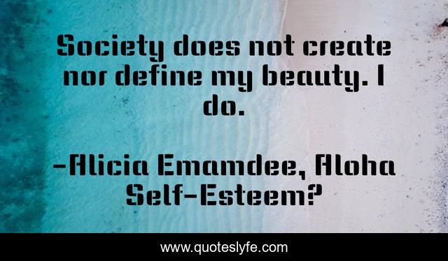 This page presents the quote "Society does not create nor define my beauty. I do.". Author of this quote is Alicia Emamdee, Aloha Self-Esteem?. This quote is about confidence, define-your-own-beauty, beauty,.