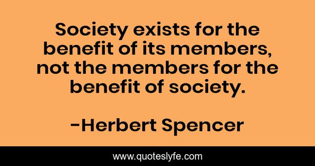This page presents the quote "Society exists for the benefit of its members, not the members for the benefit of society.". Author of this quote is Herbert Spencer. This quote is about benefit, members, exists,.