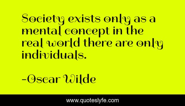 This page presents the quote "Society exists only as a mental concept in the real world there are only individuals.". Author of this quote is Oscar Wilde. This quote is about real, world, mental,.