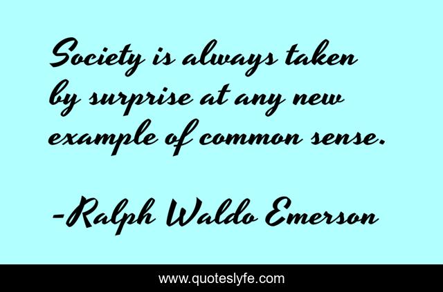 This page presents the quote "Society is always taken by surprise at any new example of common sense.". Author of this quote is Ralph Waldo Emerson. This quote is about society, common-sense, example, surprise,.