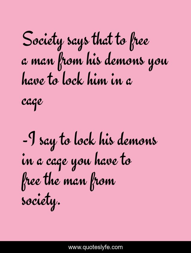 "I say to lock his demons in a cage you have to free the man from society. Quotes." Quoteslyfe.com, 2025. Sat. 06 Dec. 2025. <https://www.quoteslyfe.com/quote/Society-says-that-to-free-a-man-214035>.