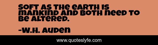 This page presents the quote "Soft as the earth is mankind and both need to be altered.". Author of this quote is W.H. Auden. This quote is about mankind, geology,.