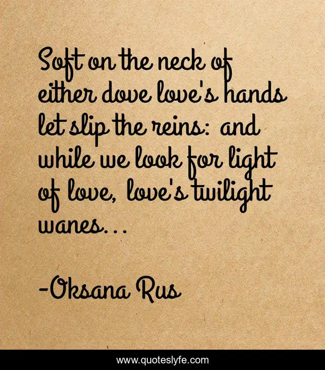"Oksana Rus Quotes." Quoteslyfe.com, 2025. Sun. 07 Dec. 2025. <https://www.quoteslyfe.com/quote/Soft-on-the-neck-of-either-dove-66410>.