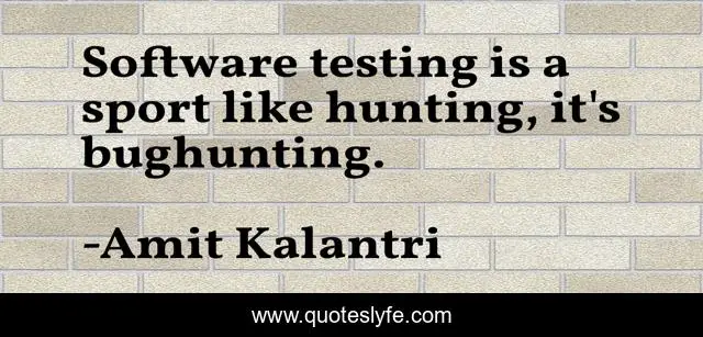 "Amit Kalantri Quotes." Quoteslyfe.com, 2025. Fri. 05 Dec. 2025. <https://www.quoteslyfe.com/quote/Software-testing-is-a-sport-like-hunting-196616>.