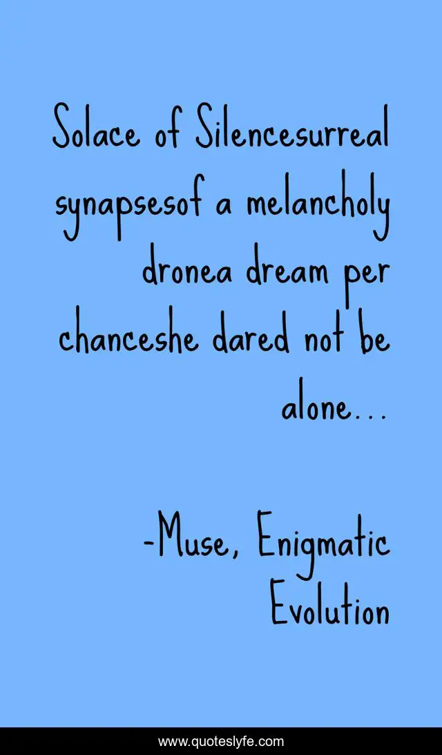 "Muse, Enigmatic Evolution Quotes." Quoteslyfe.com, 2025. Fri. 05 Dec. 2025. <https://www.quoteslyfe.com/quote/Solace-of-Silencesurreal-synapsesof-a-melancholy-dronea-115060>.