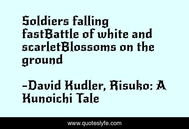 "David Kudler, Risuko: A Kunoichi Tale Quotes." Quoteslyfe.com, 2025. Mon. 08 Dec. 2025. <https://www.quoteslyfe.com/quote/Soldiers-falling-fastBattle-of-white-and-scarletBlossoms-211965>.