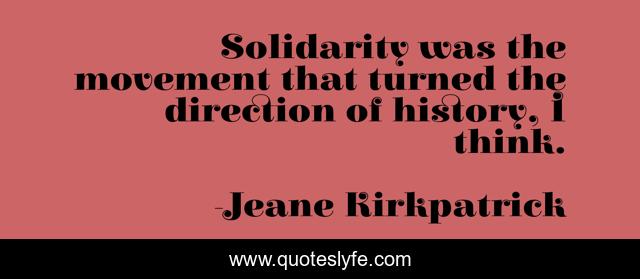 This page presents the quote "Solidarity was the movement that turned the direction of history, I think.". Author of this quote is Jeane Kirkpatrick. This quote is about direction, think, solidarity,.