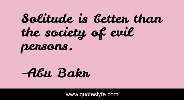 This page presents the quote "Solitude is better than the society of evil persons.". Author of this quote is Abu Bakr. This quote is about better, solitude, evil,.