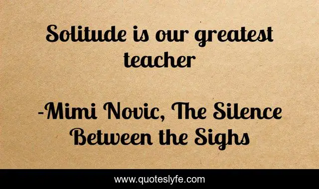 "Mimi Novic, The Silence Between the Sighs Quotes." Quoteslyfe.com, 2025. Mon. 08 Dec. 2025. <https://www.quoteslyfe.com/quote/Solitude-is-our-greatest-teacher-248631>.