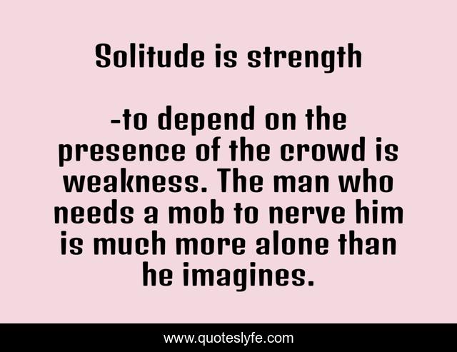 "to depend on the presence of the crowd is weakness. The man who needs a mob to nerve him is much more alone than he imagines. Quotes." Quoteslyfe.com, 2025. Sat. 06 Dec. 2025. <https://www.quoteslyfe.com/quote/Solitude-is-strength-192730>.