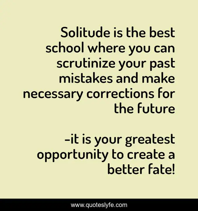 This page presents the quote "Solitude is the best school where you can scrutinize your past mistakes and make necessary corrections for the future". Author of this quote is it is your greatest opportunity to create a better fate!. .