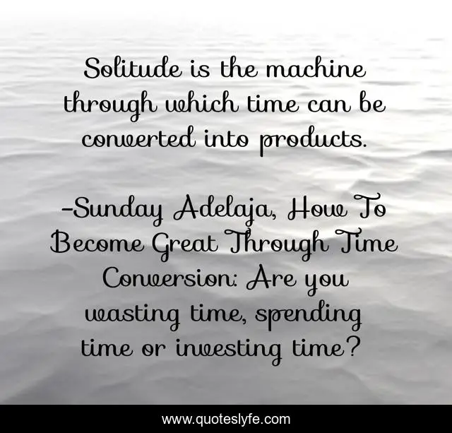 "Sunday Adelaja, How To Become Great Through Time Conversion: Are you wasting time, spending time or investing time? Quotes." Quoteslyfe.com, 2025. Fri. 05 Dec. 2025. <https://www.quoteslyfe.com/quote/Solitude-is-the-machine-through-which-time-39094>.