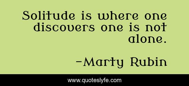 This page presents the quote "Solitude is where one discovers one is not alone.". Author of this quote is Marty Rubin. This quote is about aloneness, loneliness, solitude,.