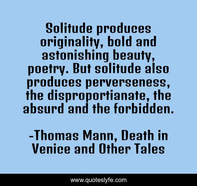 "Thomas Mann, Death in Venice and Other Tales Quotes." Quoteslyfe.com, 2025. Tue. 09 Dec. 2025. <https://www.quoteslyfe.com/quote/Solitude-produces-originality-bold-and-astonishing-beauty-192683>.