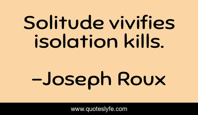 "Joseph Roux Quotes." Quoteslyfe.com, 2025. Fri. 05 Dec. 2025. <https://www.quoteslyfe.com/quote/Solitude-vivifies-isolation-kills-328282>.