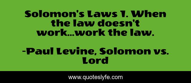 This page presents the quote "Solomon's Laws 1. When the law doesn't work...work the law.". Author of this quote is Paul Levine, Solomon vs. Lord. This quote is about law, dicta, humour,.