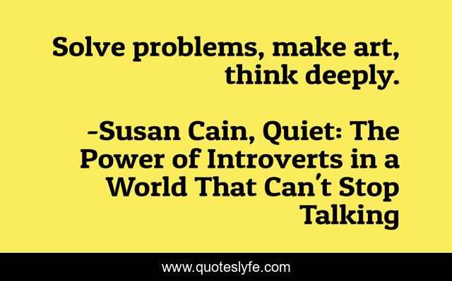 "Susan Cain, Quiet: The Power of Introverts in a World That Can't Stop Talking Quotes." Quoteslyfe.com, 2025. Fri. 05 Dec. 2025. <https://www.quoteslyfe.com/quote/Solve-problems-make-art-think-deeply-65961>.